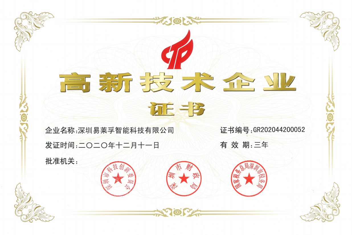 喜訊|熱烈祝賀易萊孚榮獲“高新技術企業”證書!